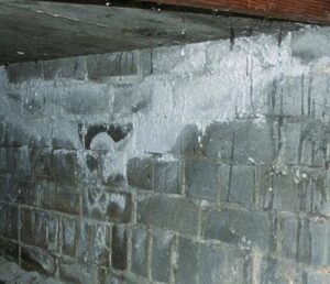 This can be a real eyesore, but can also be a problem too. The efflorescence can occur on the inside of the walls, and over time can cause spalling, which is where the walls peel and flake off on the surface.